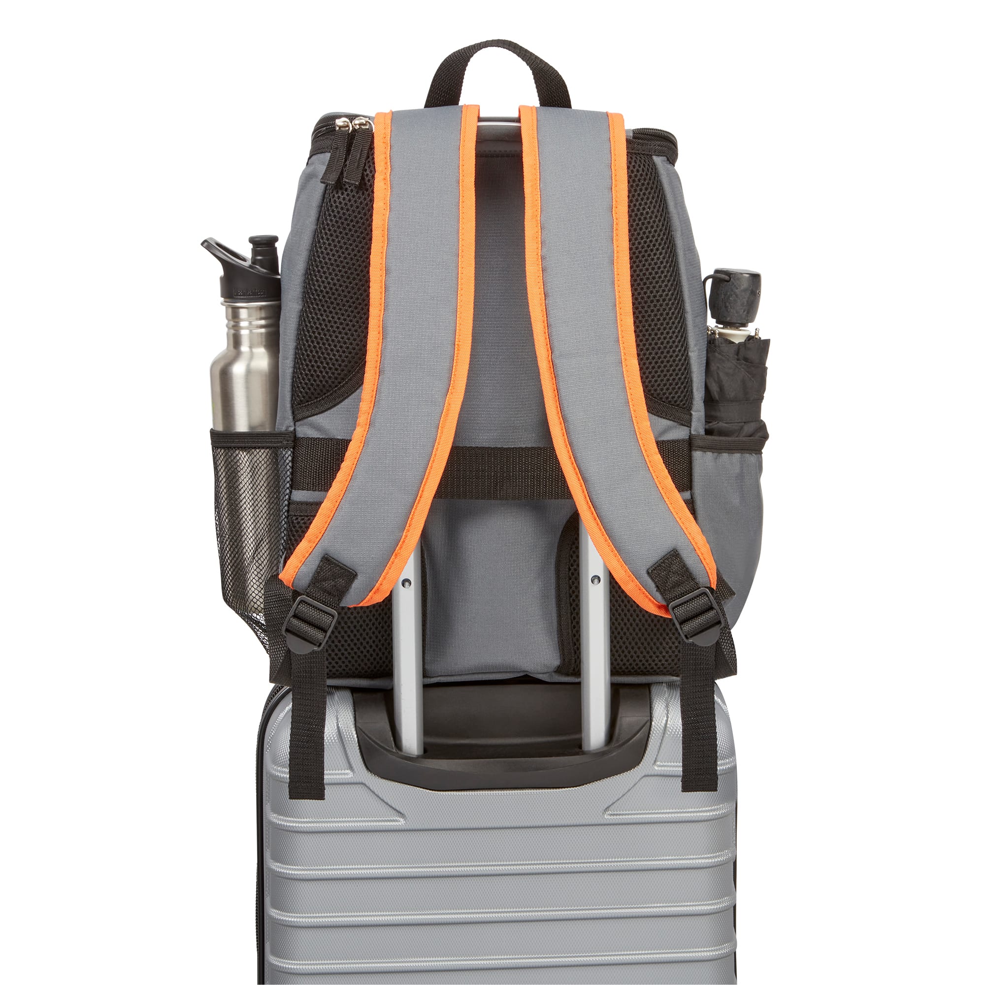 - - FEATURES include roomy main storage, multiple pockets, dog waste bag dispenser, and a luggage sleeve